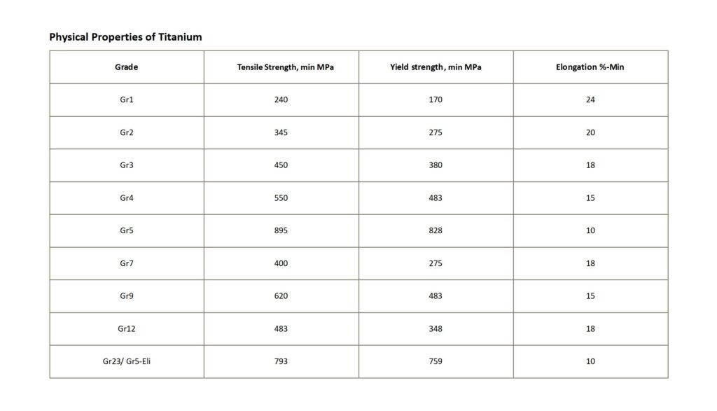 Physical Properties and Chemical Composition of Titanium